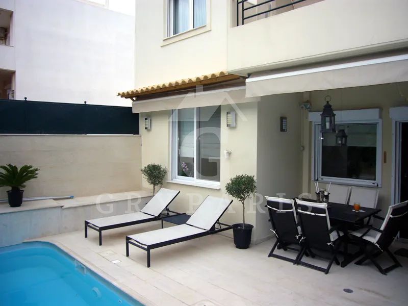 Μεζονέτα ανεξάρτητη 207,56 τ.μ ηλιακό τριπλής ενέργειας, 2 τζάκια, παντού air condition, 2 αποθήκες, 2 αποθηκευτικούς χώρους, τηλεφωνικό κέντρο, διαμορφωμένος κήπος πισίνας με μάρμαρο.