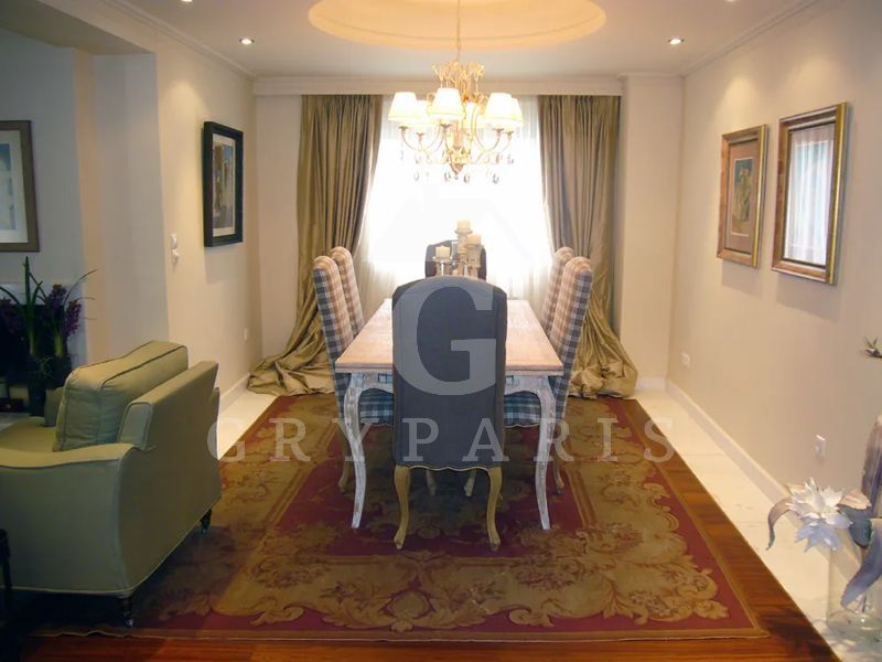 Στο υπερυψωμένο ισόγειο βρίσκεται η κεντρική είσοδος του σπιτιού με πόρτα ασφαλείας, υπάρχει ένας ενιαίος χώρος με τζάκι (σαλόνι, τραπεζαρία, εγκατάσταση για δεύτερη κουζίνα ),W.C. και 2 μπαλκόνια. Όλος ο χώρος είναι με παρκέ διαρκείας πλαισιωμένο από μάρμαρο .